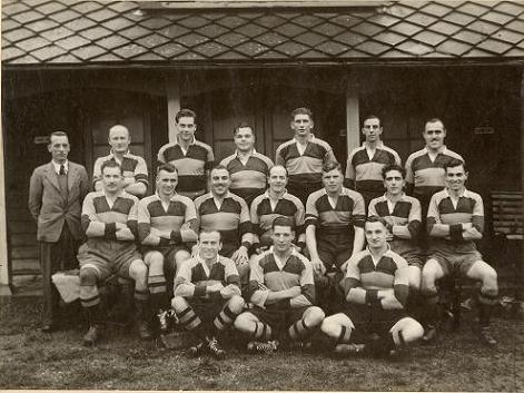 the irrepressible but unpredictable centre play of Hedley Rowland. Hedley, whose insistence to concentrate on attack, had a profound influence on Newport’s style of attractive play. Several players who were to play a major part in Newport’s illustrious history appeared including R T (Bob) Evans who was to become one of the game’s finest wing forwards, John Gwilliam, who led Wales to two Triple Crowns, Jack Bale, a future captain and Peter Davies who was to be one of Newport’s strongest forwards over 9 seasons before going north. Experienced forwards Bunner Travers, Bill Jones and Ernie Coleman gave steadiness to the Newport pack and the pre-war Wales international wing-forward and 1938 British Lion Russell Taylor from Cross Keys played his part. The 538 pts scored reflected Newport’s style of play. Rowland was top scorer with 20 tries and 3 dg’s while scrum-half Jim Hawkins made the most appearances with 35 followed by 2nd row Tom Tamplin (one of 3 brothers to play for Newport) 32 and Russell Taylor 31. Wing WE (Billy) Williams, who played for Wales in a Victory International and who was to turn professional and go north the following season along with fullback Tuss Griffiths, scored 13 tries from 25 games and felllow wing BJR Simpson scored 7 tries from just 13 appearances. Centre Ross Johnson formed an excellent partnership with Rowland and contributed 12 tries and a dropped goal from his 28 appearances. Place kicking was shared mainly between Jim Hawkins (6 cg, 11pg), future Welsh trialist full-back D Ralph Morgan (9 pgs, 25 cg) and back row Peter Davies (5 pg, 9cg). Jim Hawkins also dropped 5 goals during the season.