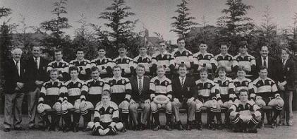 History was made when the league match at Aberavon became the first live televised club match in Wales. Newport won in style 38-21 and effectively sealed promotion. Newport surrendered an unbeaten home league record with a poor display against Maesteg in the rain and mud at Rodney Parade but bounced back to seal the Division 1 Championship with a resounding win at Rodney Parade against South Wales Police 23-7. Further wins followed against Bristol (H) and Tredegar (A) in the league to end a fine season. Newport had scored 499pts and 83 tries in their 14 league matches – by far the highest number of tries in the top 4 divisions. Outside-half Paul Turner capped a fine season with 291pts from his 27 games (127 from 9 league) followed by utility back Gary Abraham with 126pts. Back-row Kevin Withey (ex-Bath) was leading try scorer with 16 tries from 21 apps with scrum half David Llewellyn (ex-Ebbw Vale) 15t from 16 games. Centre Roger Bidgood (ex-Pontypool) made most appearances with 29.