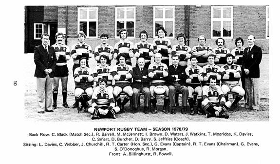 Newport toured South Africa in August 1979 under manager RT Evans and coach Sid Jeffrey. Gareth Evans captained the side but the tour was not a success and Newport lost 5 and drew 1 of the 6 matches played. Wing John Churchill played in all 6 matches scoring 4 tries. Chris Webber scored 3t, 3c, 2p, 1dg. Justin Robinson (utility back) made his debut on the tour and was to play many more games or Newport. His brother Julian also joined later.