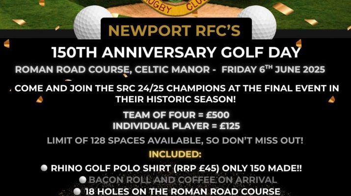 As a part of our 150th anniversary celebrations for Newport RFC, we are holding a Golf Day at the Celtic Manor next Friday, 6th