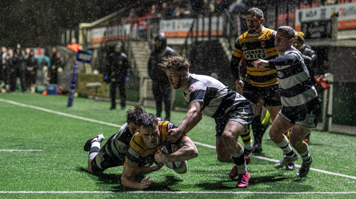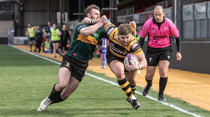 DOUBLE DELIGHT OVER THE IRONMEN Report by Rhys Jones The Black & Ambers’ quest for a play-off spot continues after a hard-fought bonus-point win