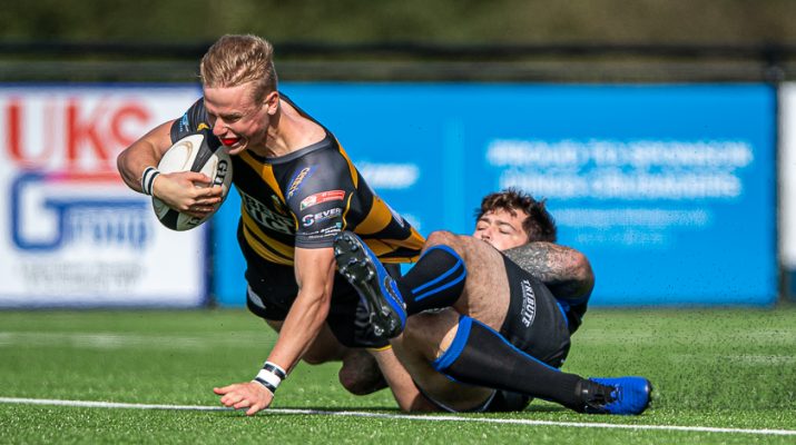 Newport were attacking in the eleventh minute as they drove at the Dings line. A powerful series of surges inched them closer. Geraint Watkin did well to retain the ball at one point before Haydn Simons made a burst. Simons was tackled but Newport were awarded the attacking scrum as Dings had knocked on. The strong scrum had to be reset but the ball reached Haydn Simons again until he was snagged. Kyle Tayler was in as a makeshift ‘9’ but his pass out was spilled. Dings were on it in a flash, their speedy winger racing upfield with black and amber jerseys trailing in his wake. He had support to his right, however, and wisely used it as Newport tried to close the danger down. Wing Ian Clark was credited with the well-taken try which Ollie Milner converted to make the score Dings 10 Newport 0.