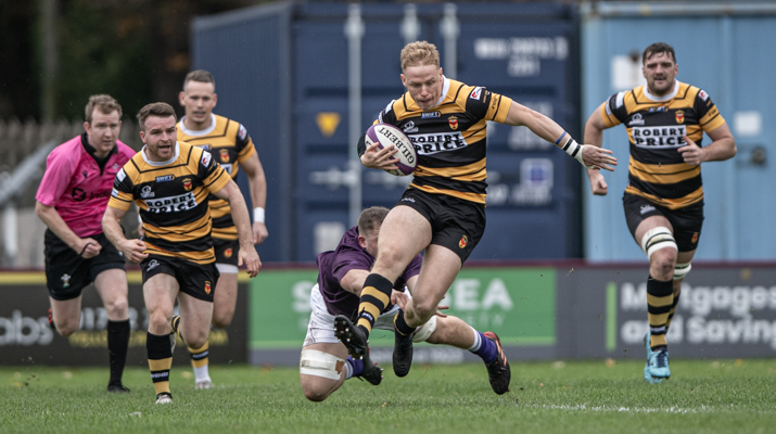 It was now Swansea’s turn to apply pressure and play reached the Newport 22 for the first time. However, when Swansea lost possession, Black and Amber captain Matt O’Brien was able to kick for touch to the halfway line. Back came Swansea but a kick ahead by outside half Dan Edwards saw two Swansea players in an offside position and this time Will Reed was able to clear the danger. Not to be denied, the home side won lineout ball and Dan Edwards sold a dummy, scored  a try and added the extras. 14 minutes and Swansea 7 Newport 7.